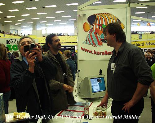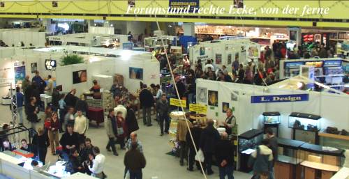 Der Gemeinschaftsstand war zu jedem Zeitpunkt der Treffpunkt für fast alle Meerwasser-Aquarianer an den drei Messetagen. Es wurde viel geratscht und viel beraten. Auffallend waren die vielen Aquarianer die Ihre auf dem Herzen liegenden Fragen stellen konnten. Wir meinen das keine Frage unbeantwortet blieb. Auch hier danken wir den vielen Helfer(inne)n, denn alleine wäre man damit hoffnungslos überfordert gewesen!![]()
