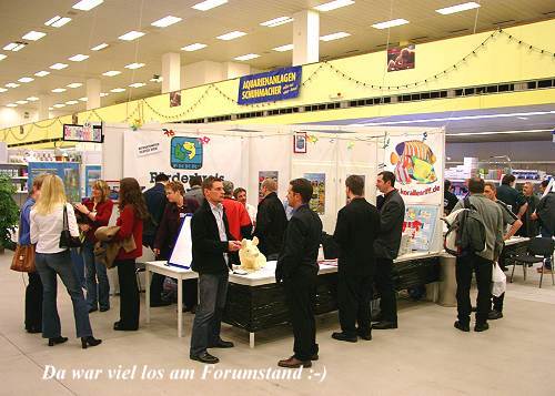 Sabine Mülder kochte unermüdlich Kaffee und füllte die von ihr zur Verfügung gestellten Schüsseln mit mitgebrachtem, leckeren Gebäck auf. Stephan Busch kümmerte sich um eine funktionierende Webcam, und besetzte so gut wie die ganze Zeit mit mir den Forumstand. So verzichtete er dazu noch auf die meisten Vorträge was wir ihm ganz hoch anrechnen :-) Es waren soviele Helfer, die man hier im einzelnen gar nicht nennen kann. Von daher von unserer Seite aus ein dickes Dankeschön an alle Beteiligten. Wir hoffen das wir keinen der vielen Helfer vergessen haben.