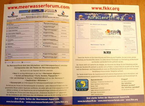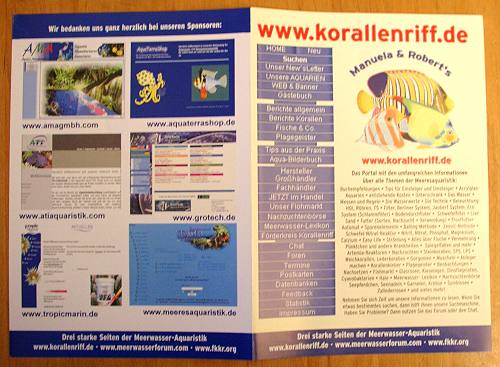 Hinten, mitte rechts der Stand des Vereines Förderkreis Korallenriff e.V. :-)So sahen die Flyer aus :